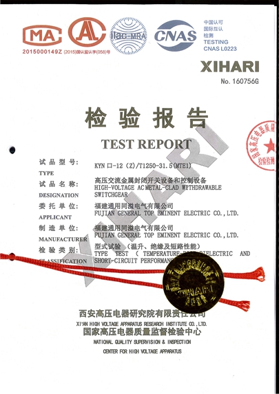 KYN□-12/T1250-31.5(常规试验)